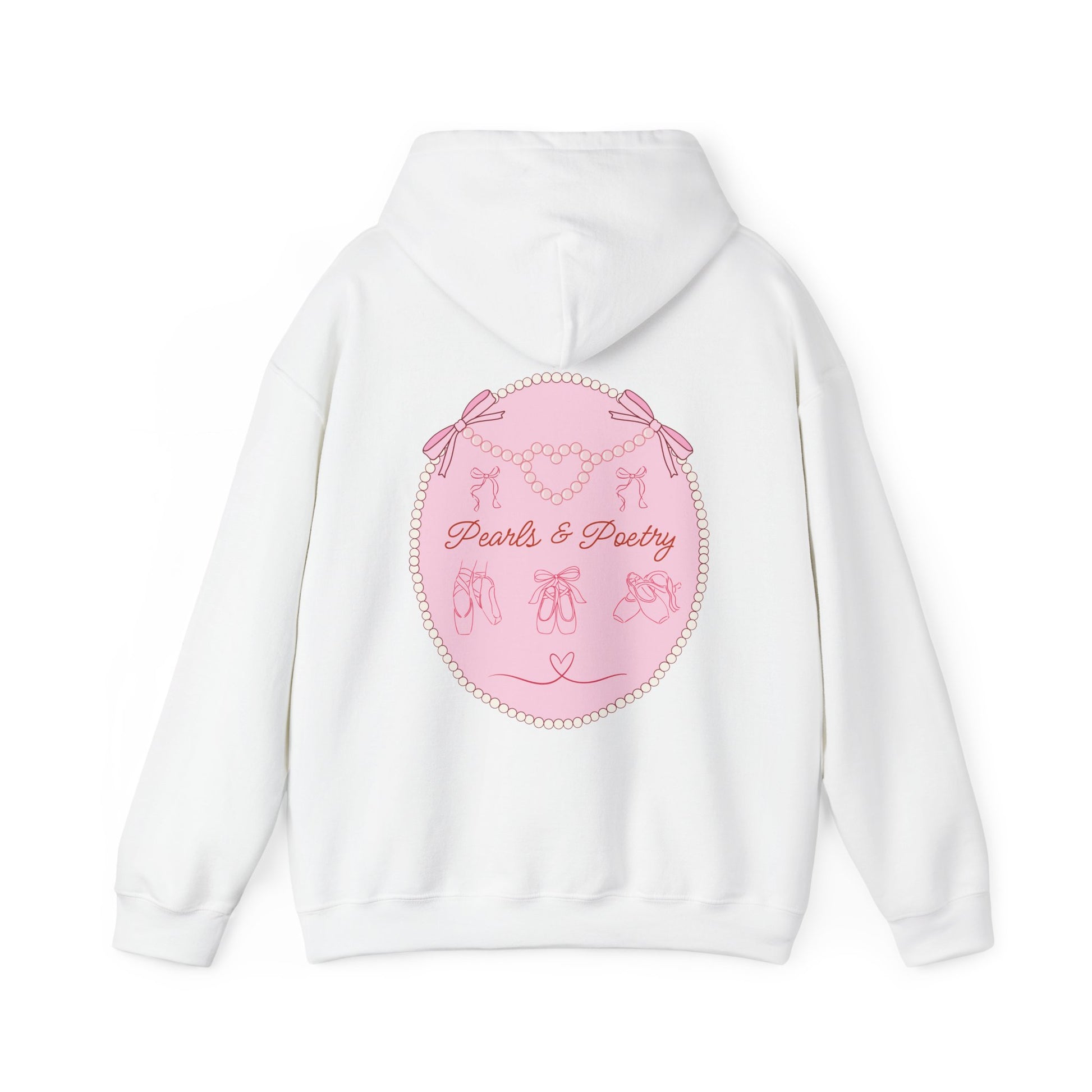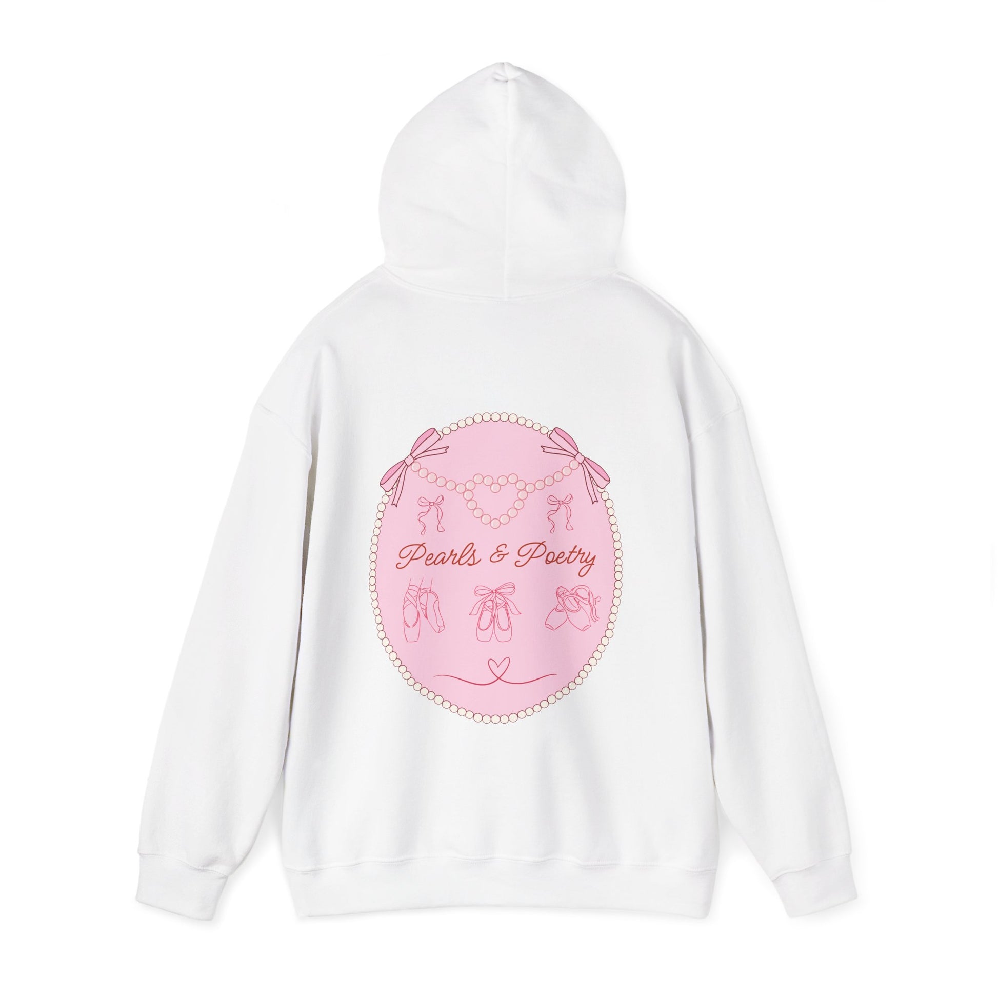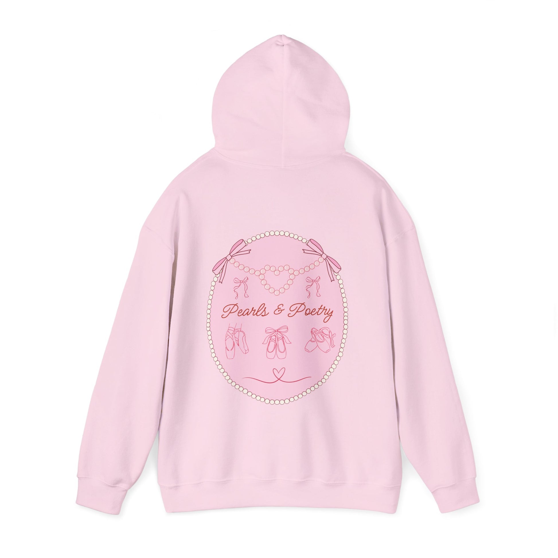 Pearls & Poetry Hoodie — Pink Ballet Emblem Hooded Sweatshirt